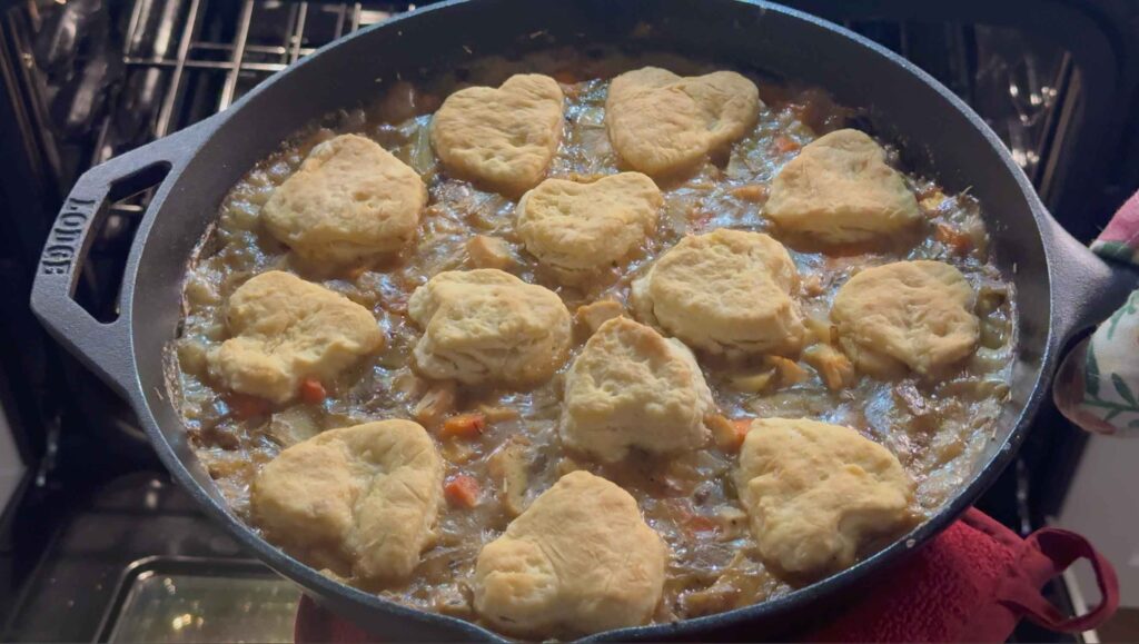 If you’ve ever wanted chicken pot pie but didn’t want to deal with making a crust… this is for you. I love traditional pot pie before, and while it’s amazing, it’s also a bit of a project. Rolling dough, getting it just right, hoping it bakes through properly… it can be a lot when all you really want is something warm and filling at the end of the day (which is how I feel most of the time, let’s be honest).