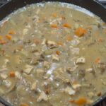 Butter and flour – These two thicken everything. This is what turns it from a soup into a proper pot pie filling, so make sure you give the flour a minute to cook before adding the liquid.