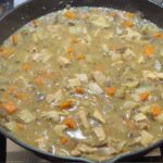 This version of chicken pot pie is a bit lighter than the traditional kind because there’s no crust, which means less butter and fewer refined carbs. Instead, you’re getting protein from the chicken, vegetables like potatoes, carrots, and onions, and a simple sauce made from broth and milk.