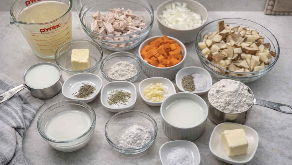 Before you start, let’s talk through the ingredients for a minute, because a few small choices here can really make a difference in how your chicken pot pie casserole turns out.
