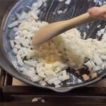 - Sautee the onion In a large skillet or pot, melt butter over medium heat, then cook the onions for about 5 minutes until they are translucent.