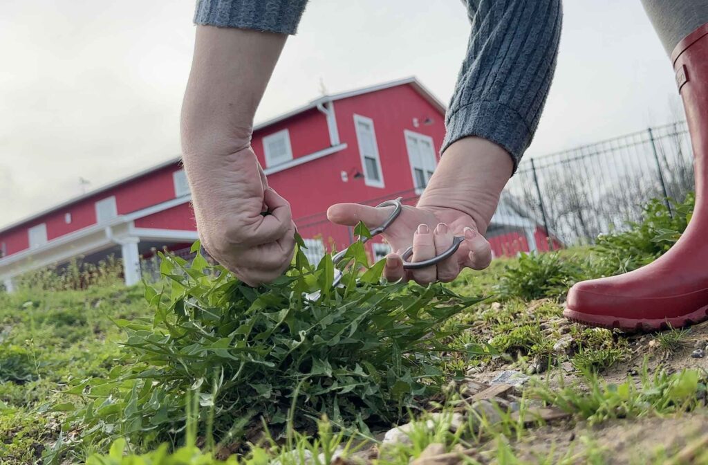 You can pick your own dandelion greens in the spring when they are growing everywhere. The trick is to go for the young ones before they develop flowers — look for small plants with tender leaves before they start getting tall or flowering, because that’s when they’re the mildest. I just snip the top half of the leaves off (that section is the least bitter). Focus on the center greens, and avoid the outer ones.