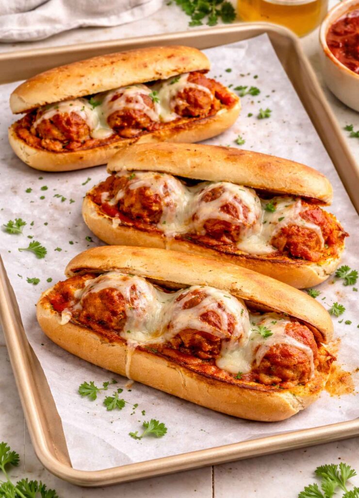 These meatball subs are everything you want them to be… warm, saucy, and generously filled with tender homemade meatballs and melted cheese on toasted rolls. They come together with simple, everyday ingredients from scratch, and once you’ve made them this way, it’s hard to go back to anything store-bought. This is the reliable version I reach for when I want something hearty and satisfying without overcomplicating dinner.