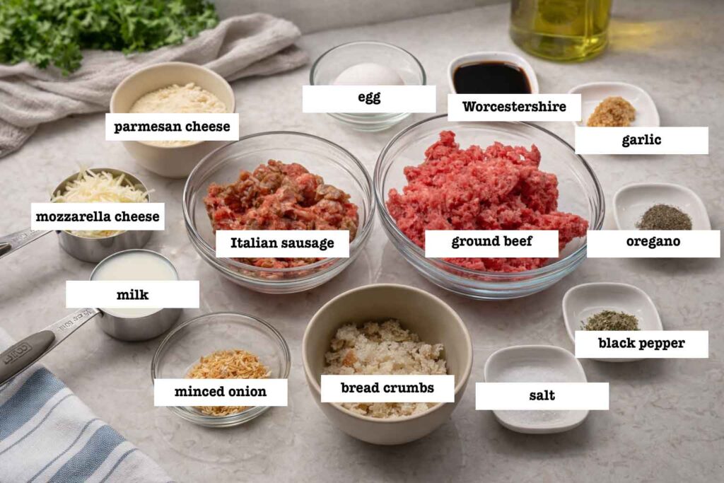 - 1 1/2 lb ground beef 80/20 (or use 1 lb. of ground beef and 1/2 lb. of Italian sausage)