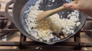 Sautee the onion In a large skillet or pot, melt butter over medium heat, then cook the onions for about 5 minutes until they are translucent.